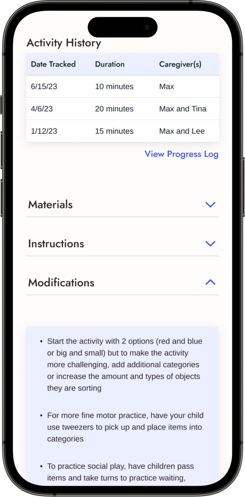 Home exercise programs are what allow children to make the most progress in their mobility and cognitive function yet the tools do not exist for caregivers to aid in making and tracking meaningful progress.