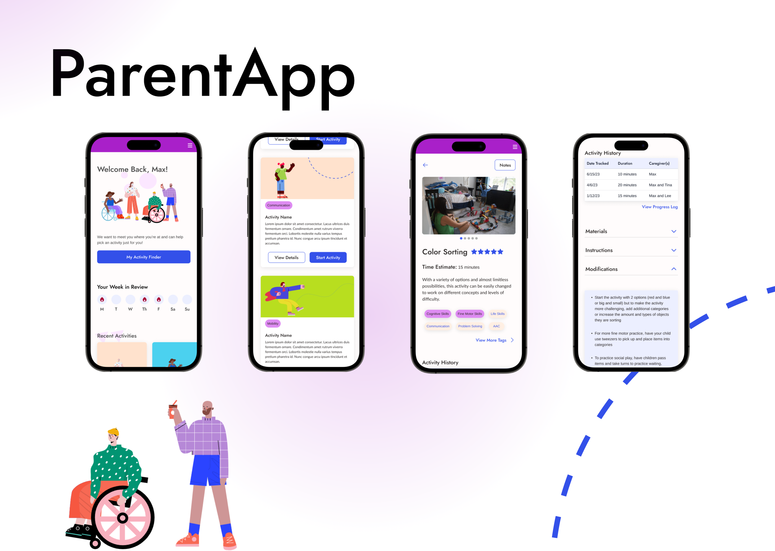 As the Visual Designer of this project, I collaborated with the UX Designer to create a MVP for our client ParentApp, a team looking to create an app to help caregivers conduct home exercise programs for children with complex cognitive and physical disabilities.